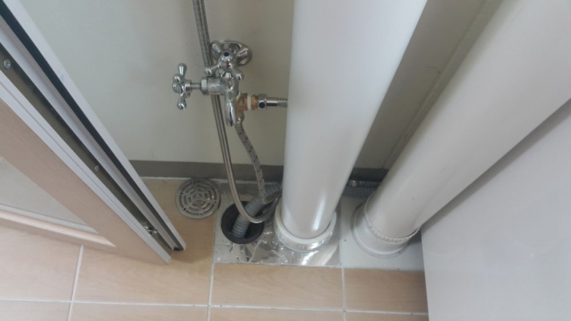 여기도 샤워기를 사용할 수 있도록 "T"형 부속을 사용해서 연결했답니다.
