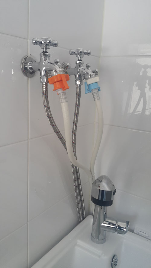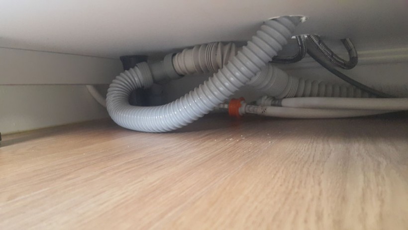 세탁기 배수호스랑 빨래씽크대를 같이 연결하였습니다.